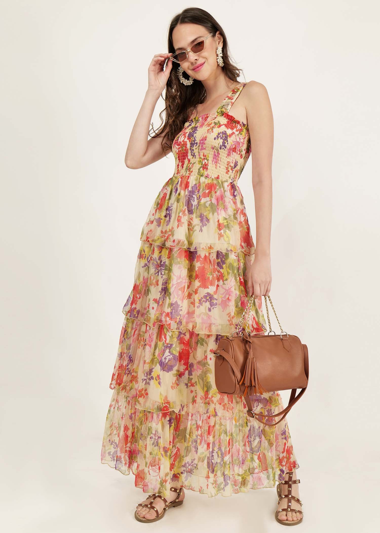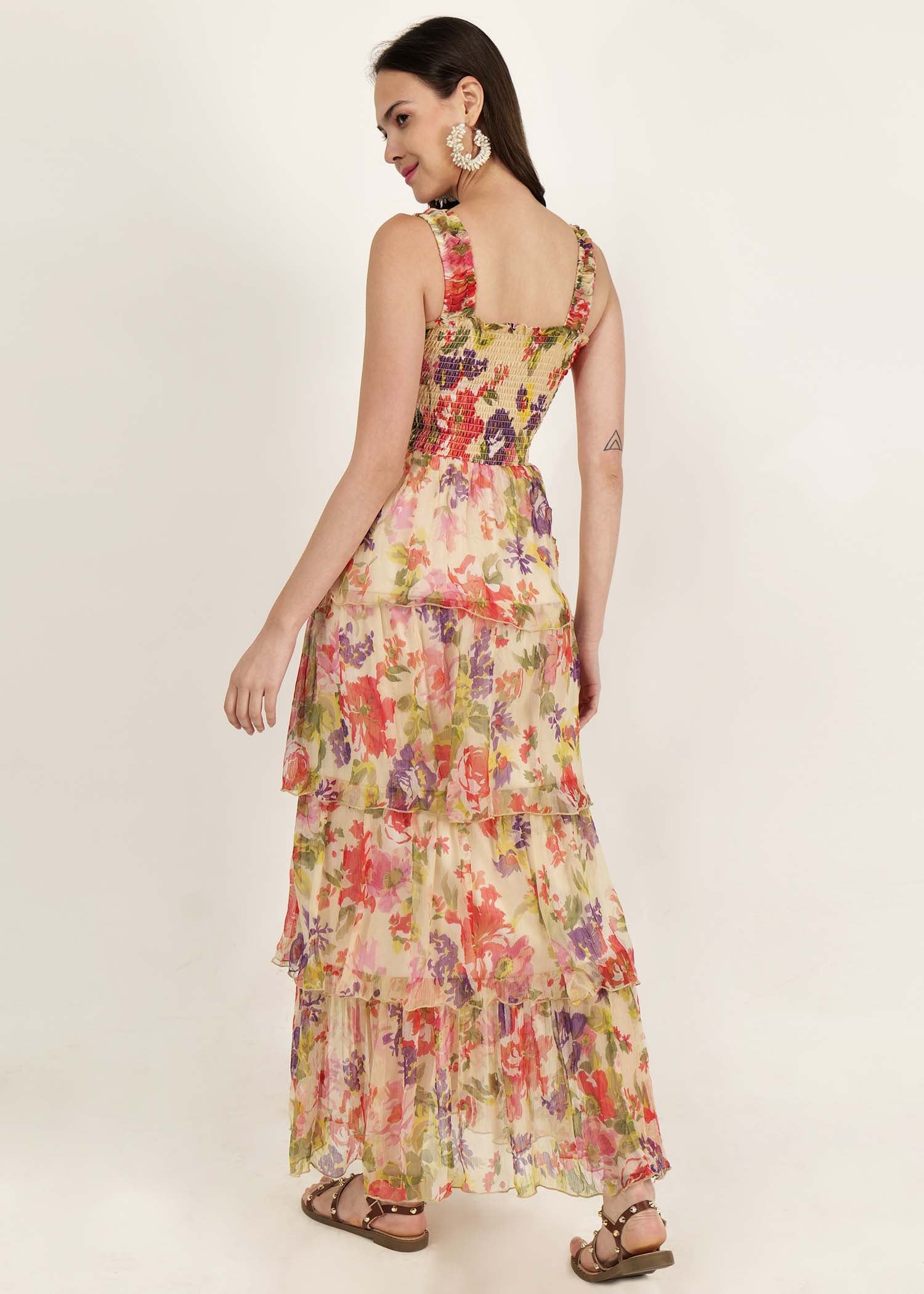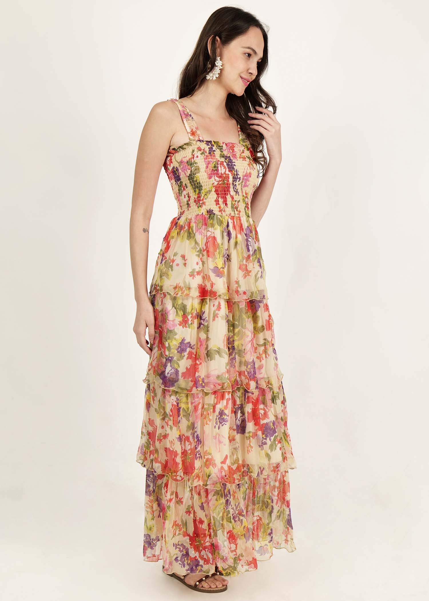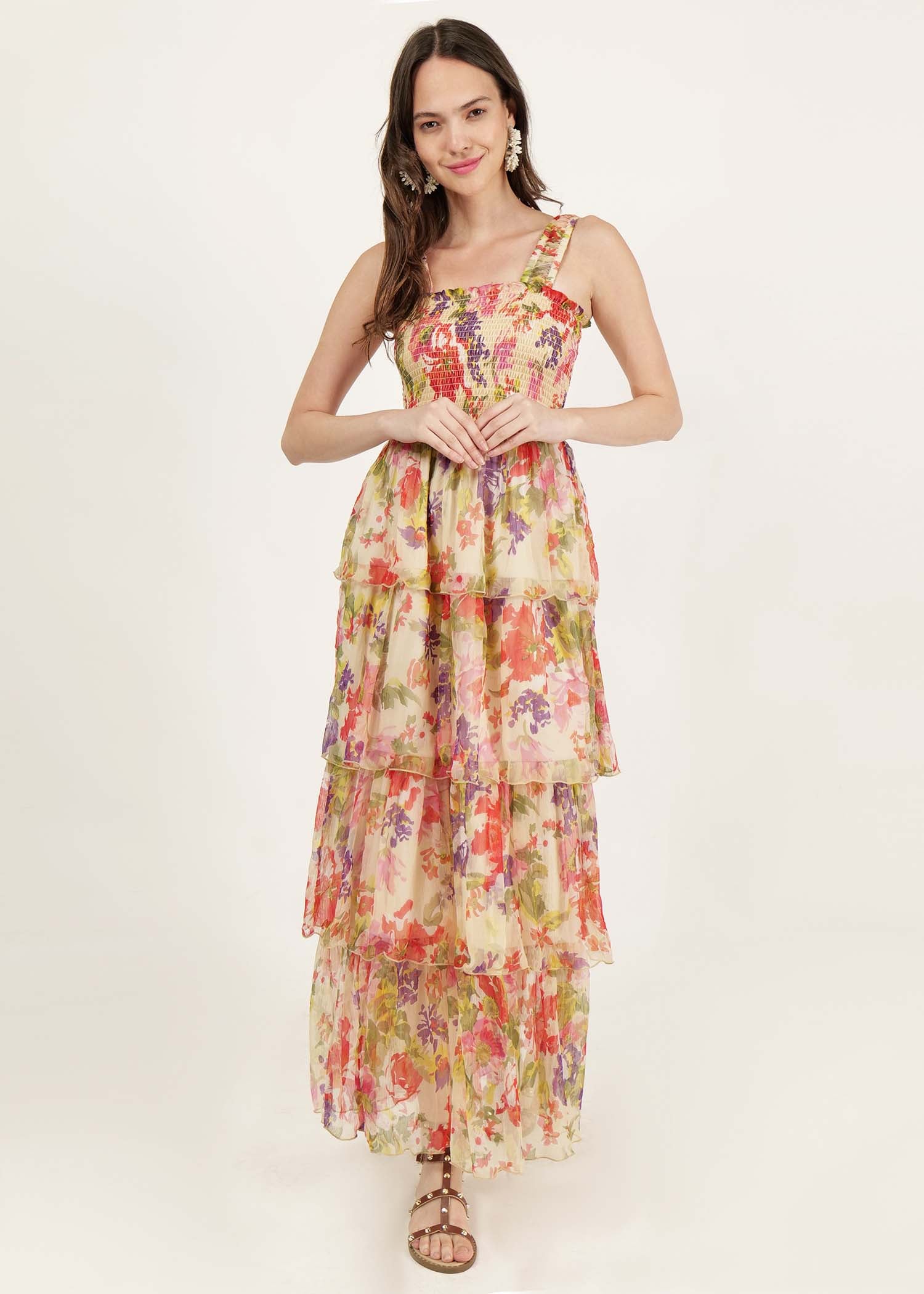 CHIFFON PRINTED FLARED DRESS WITH LINING