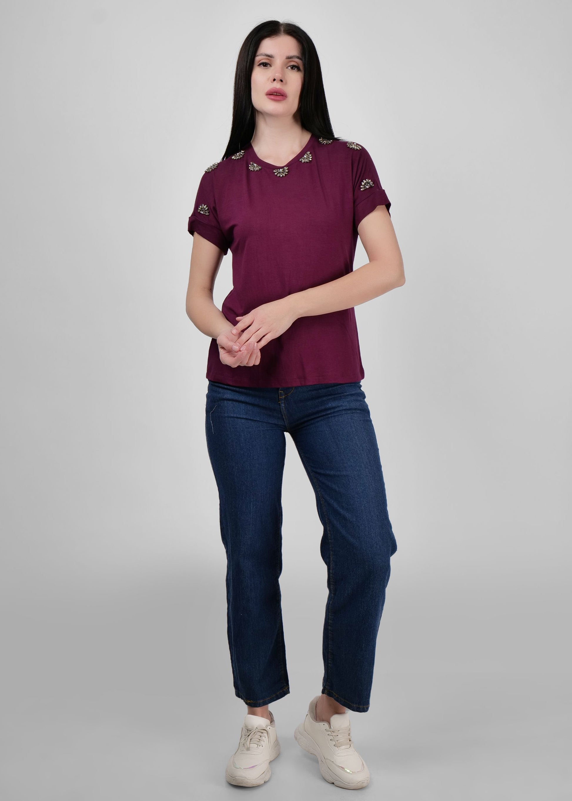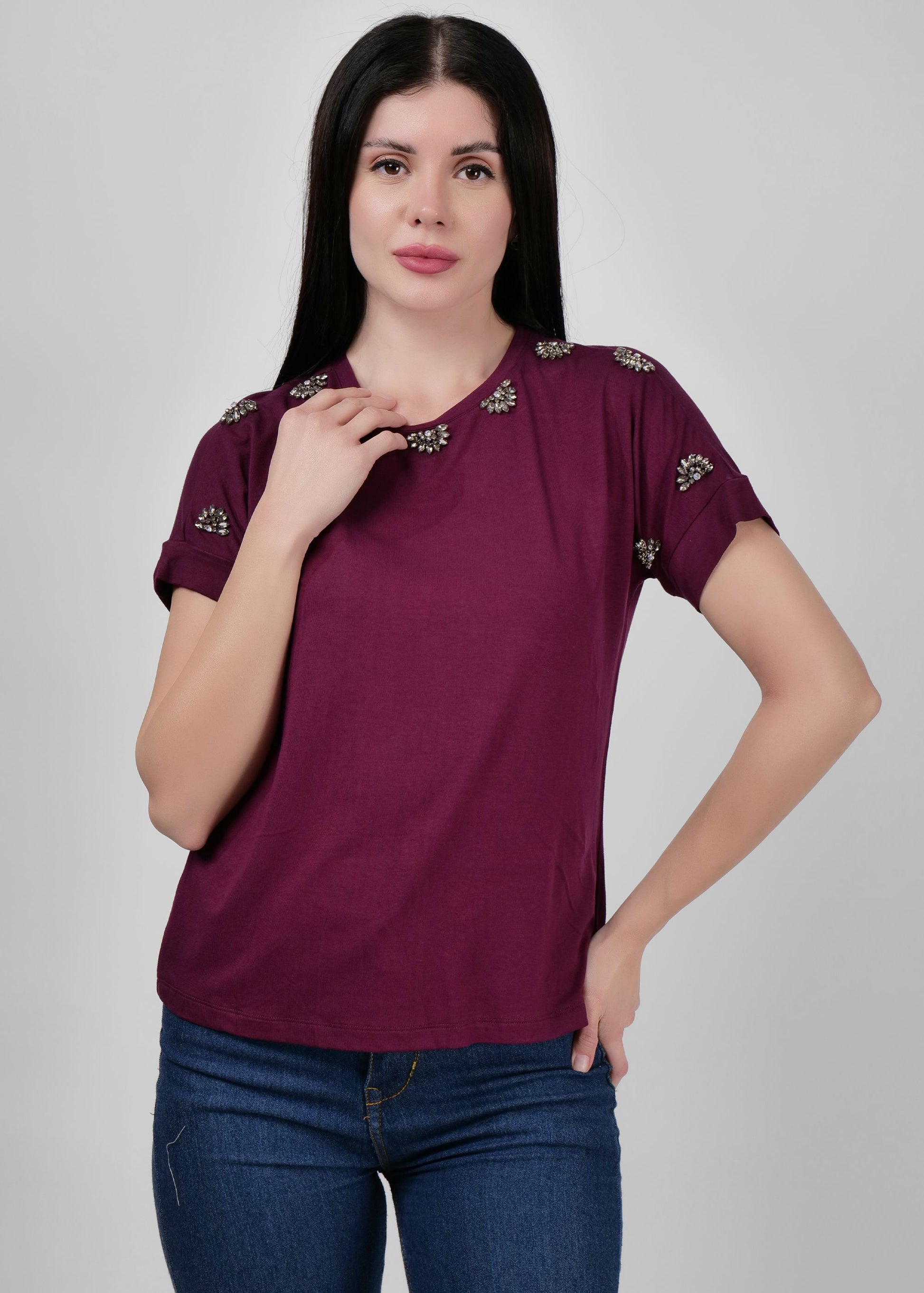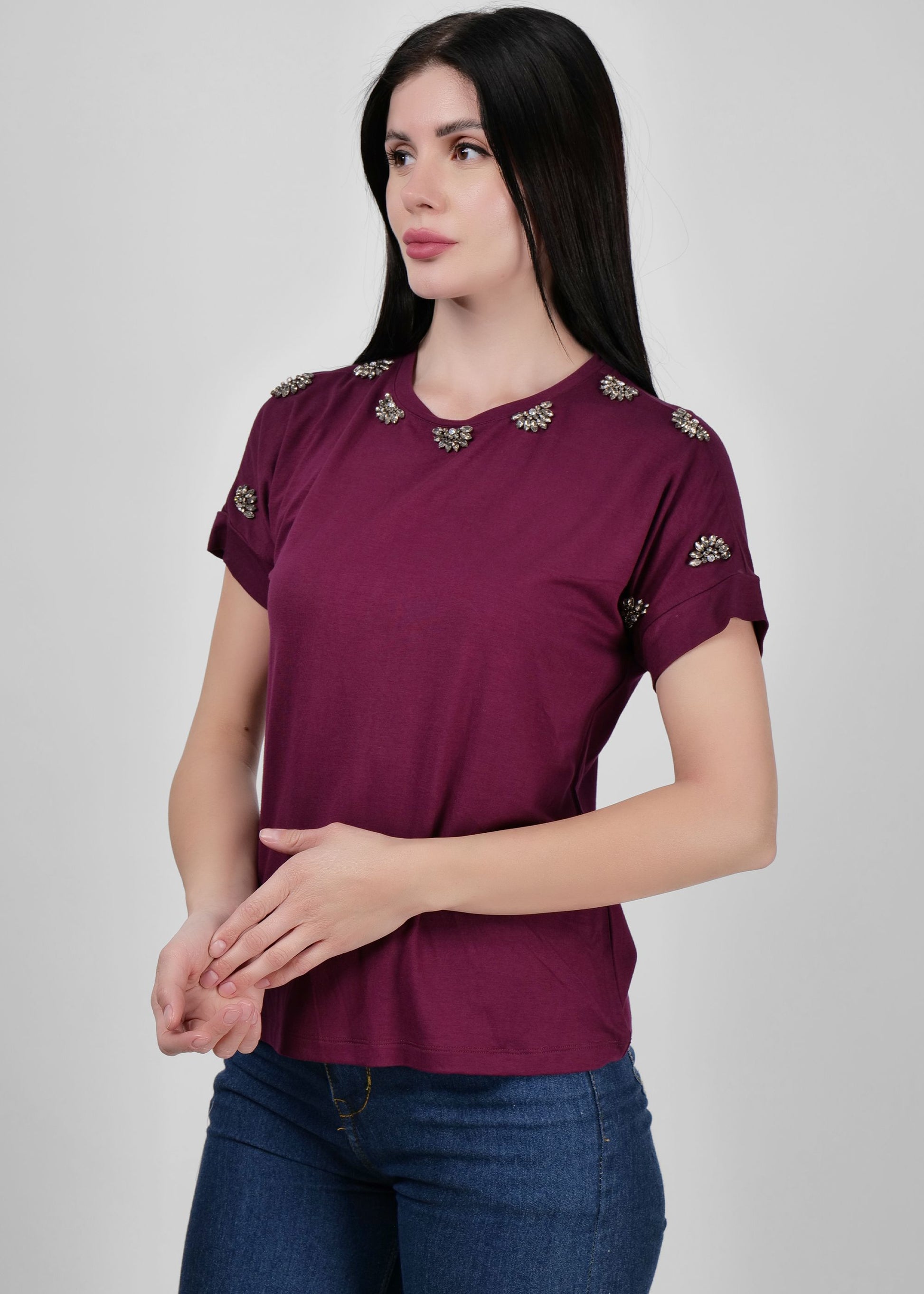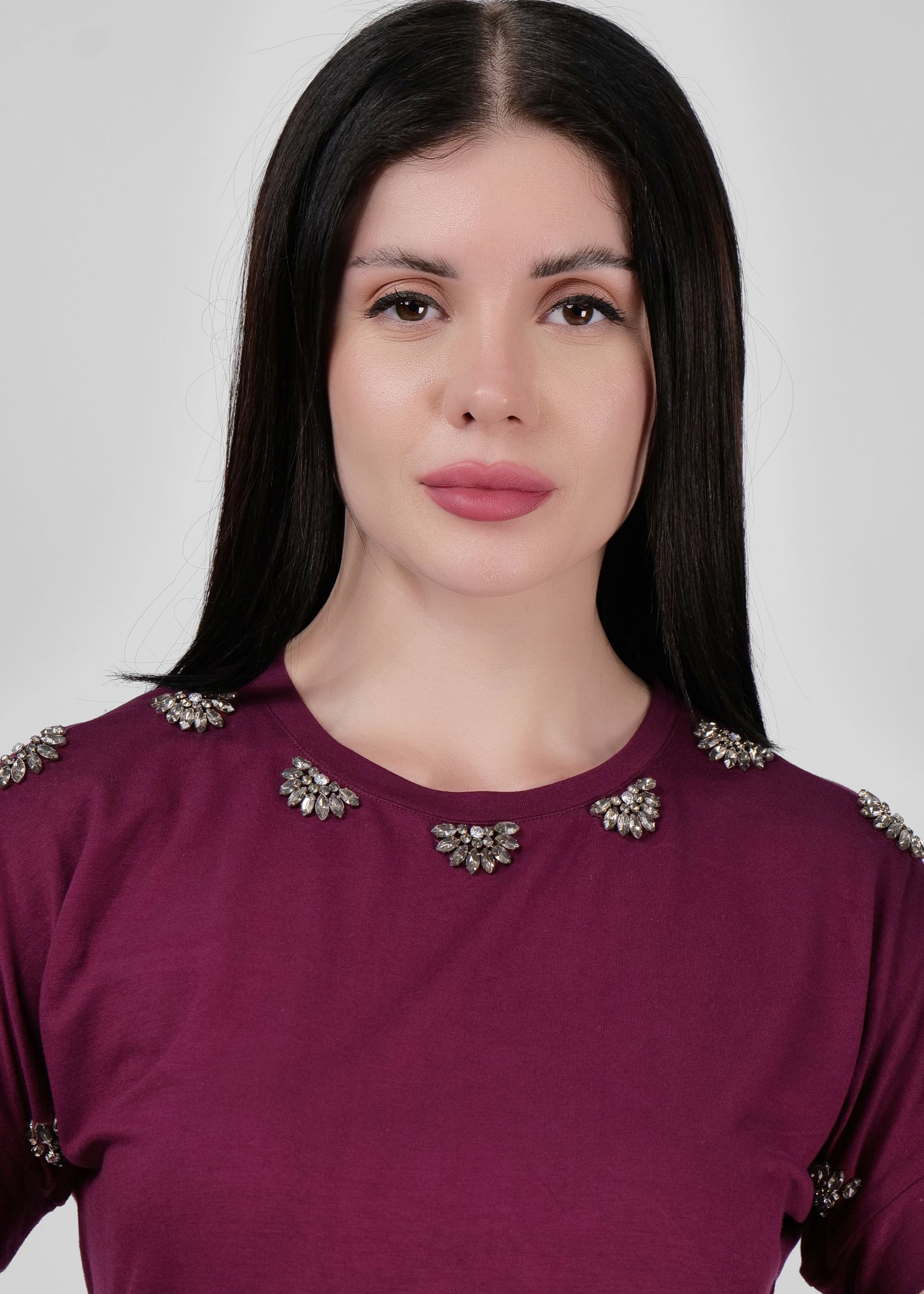 Deep maroon embellished