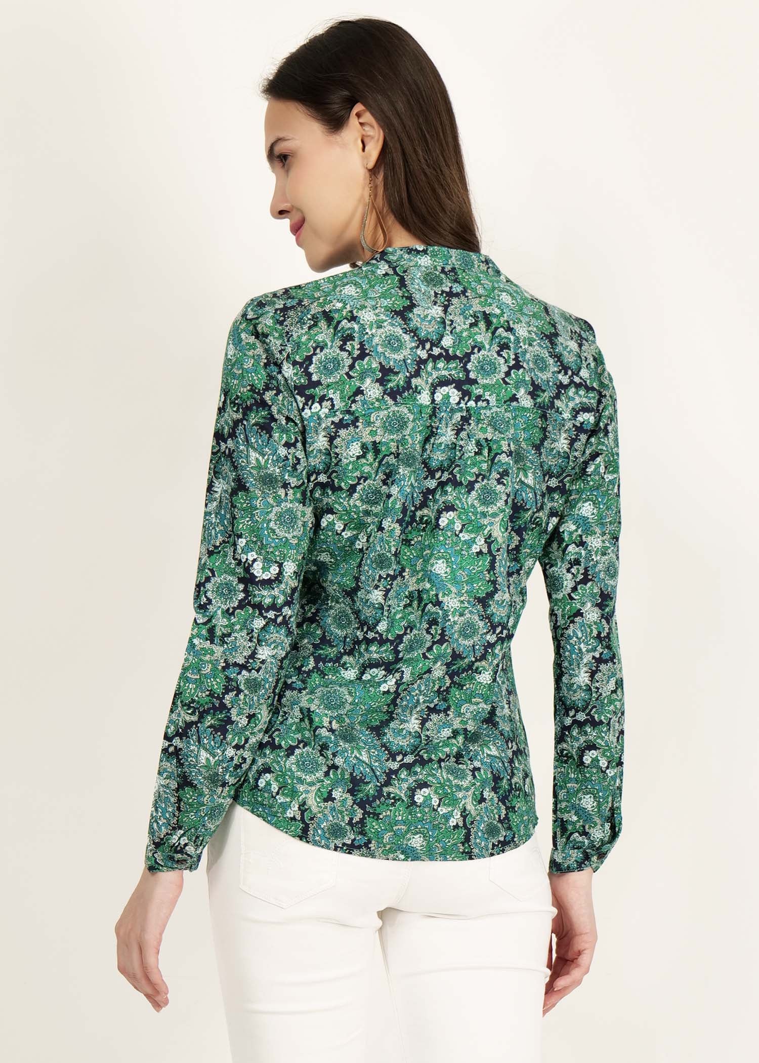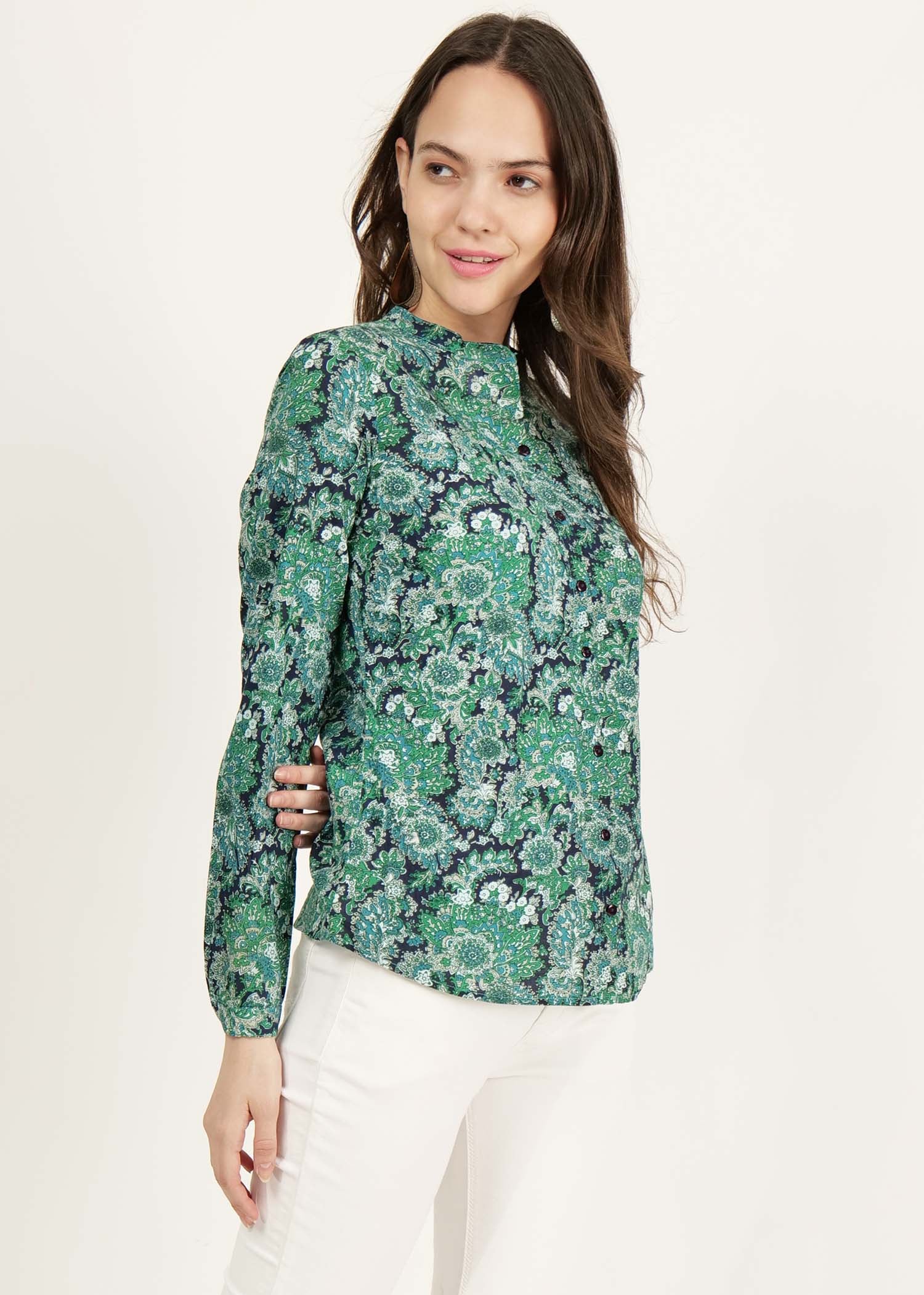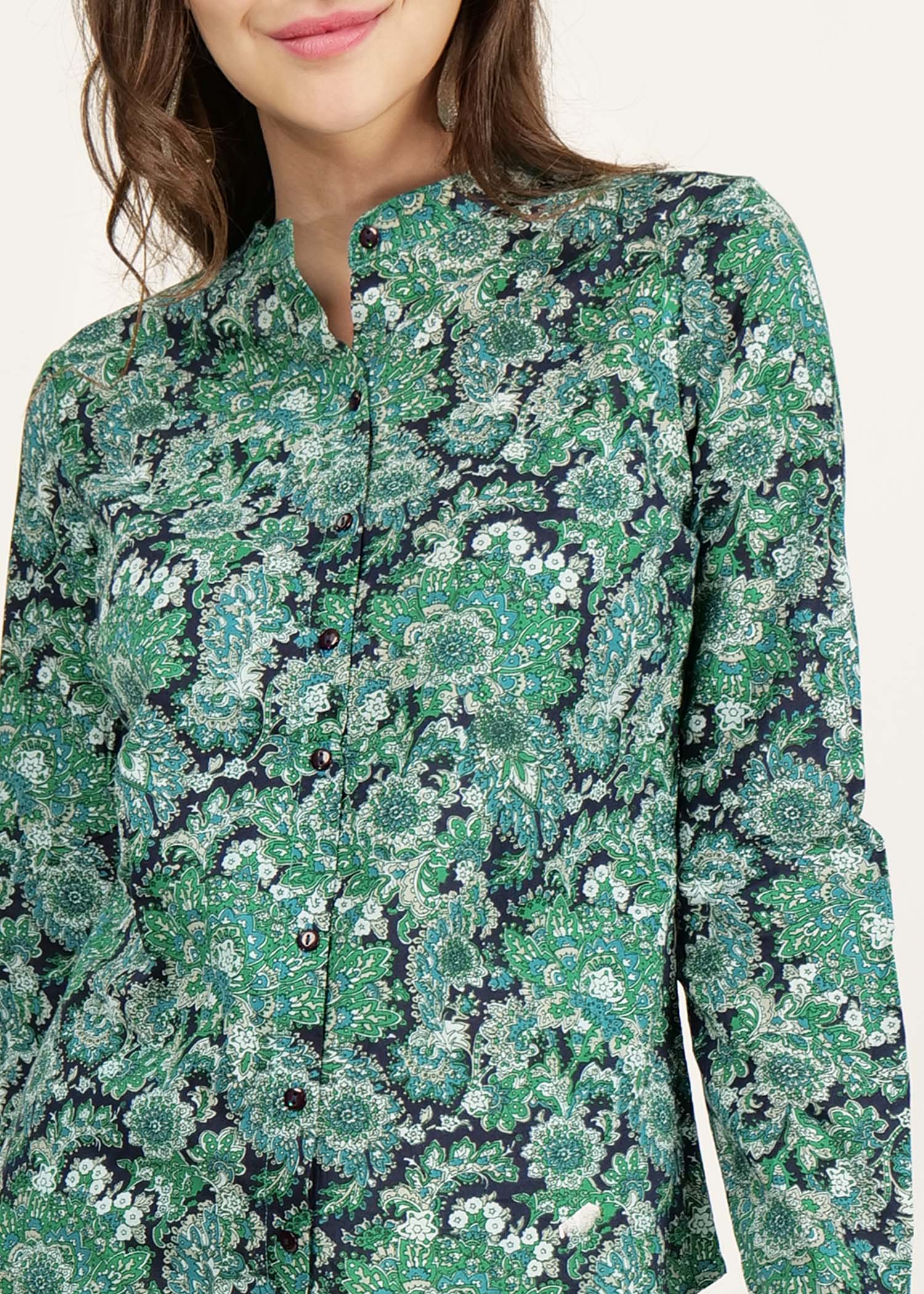DRIRO Green Floral Printed Band Collar Pure Cotton Casual Shirt