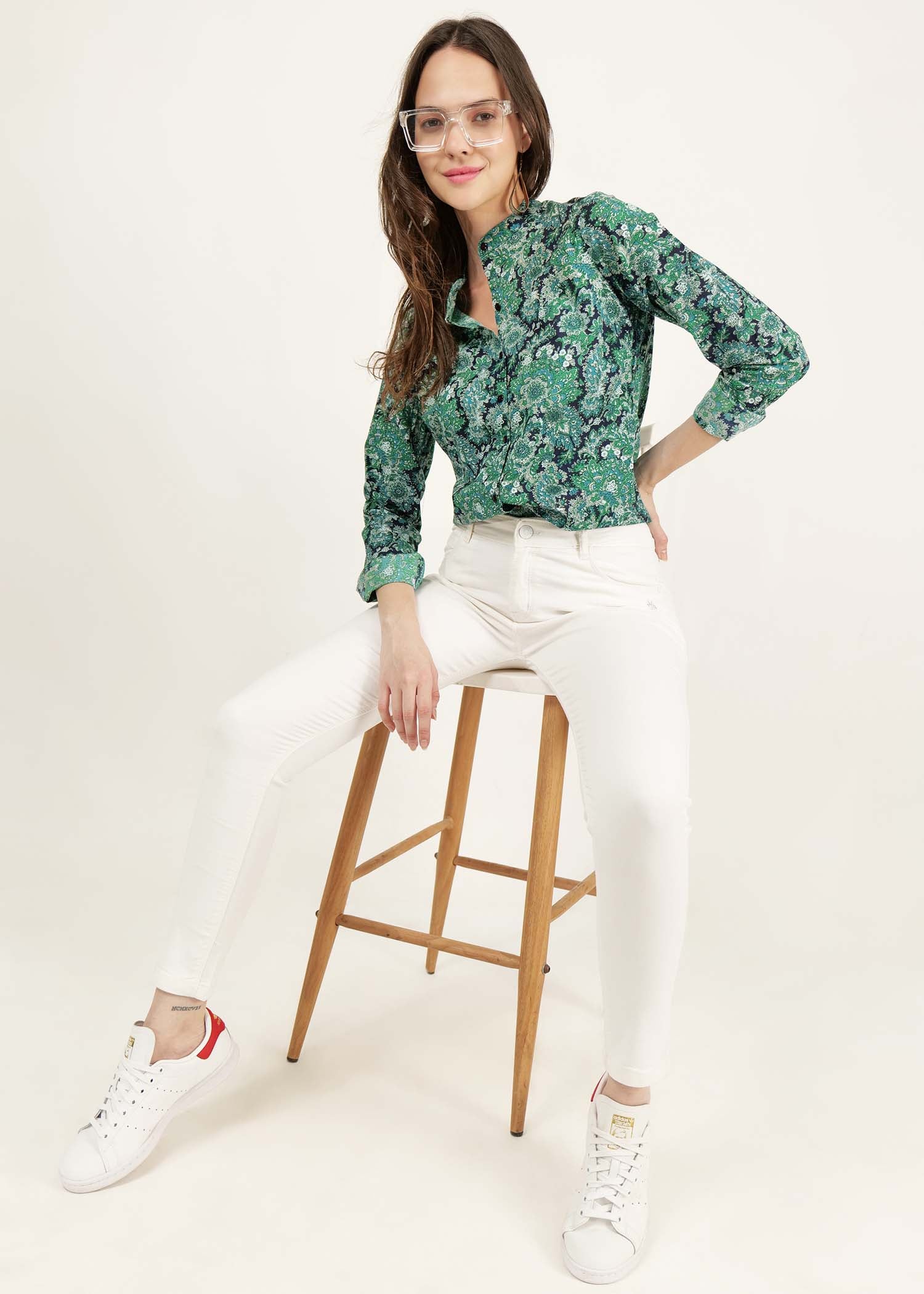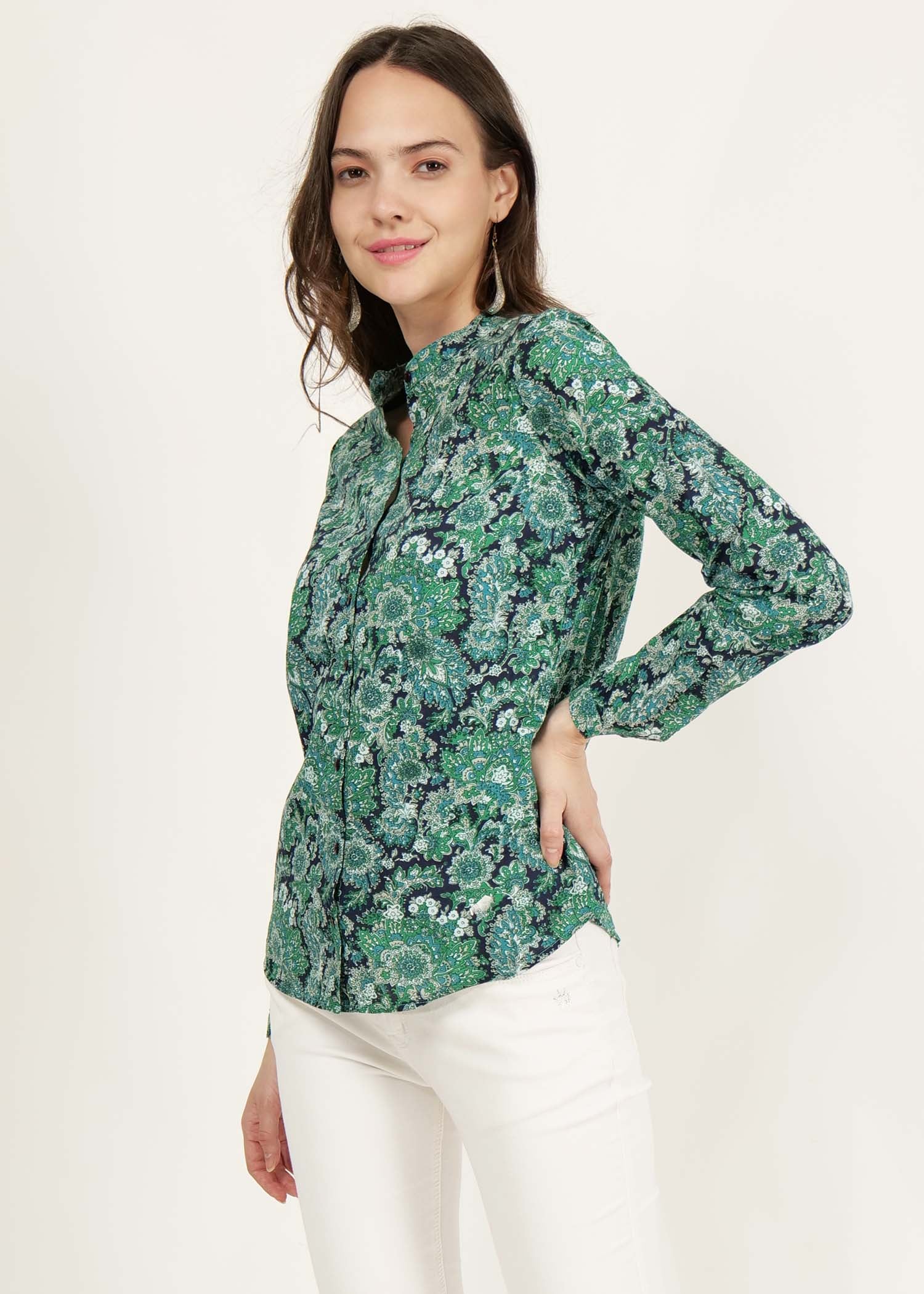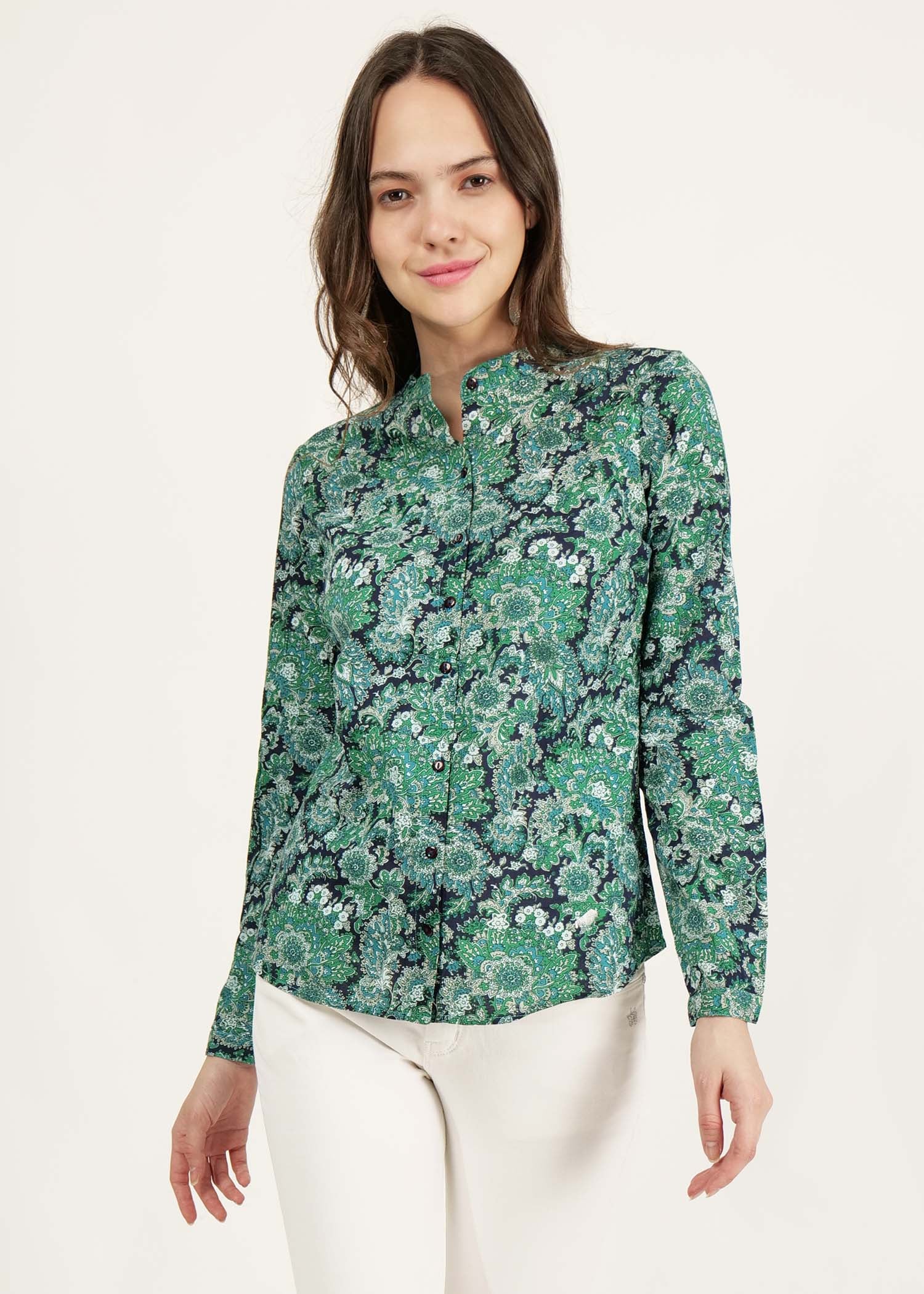 DRIRO Green Floral Printed Band Collar Pure Cotton Casual Shirt
