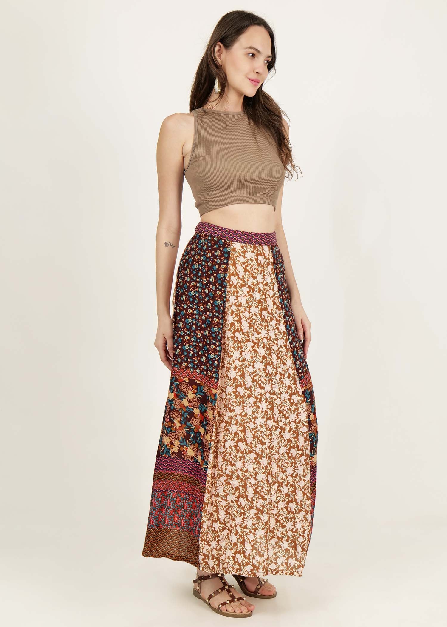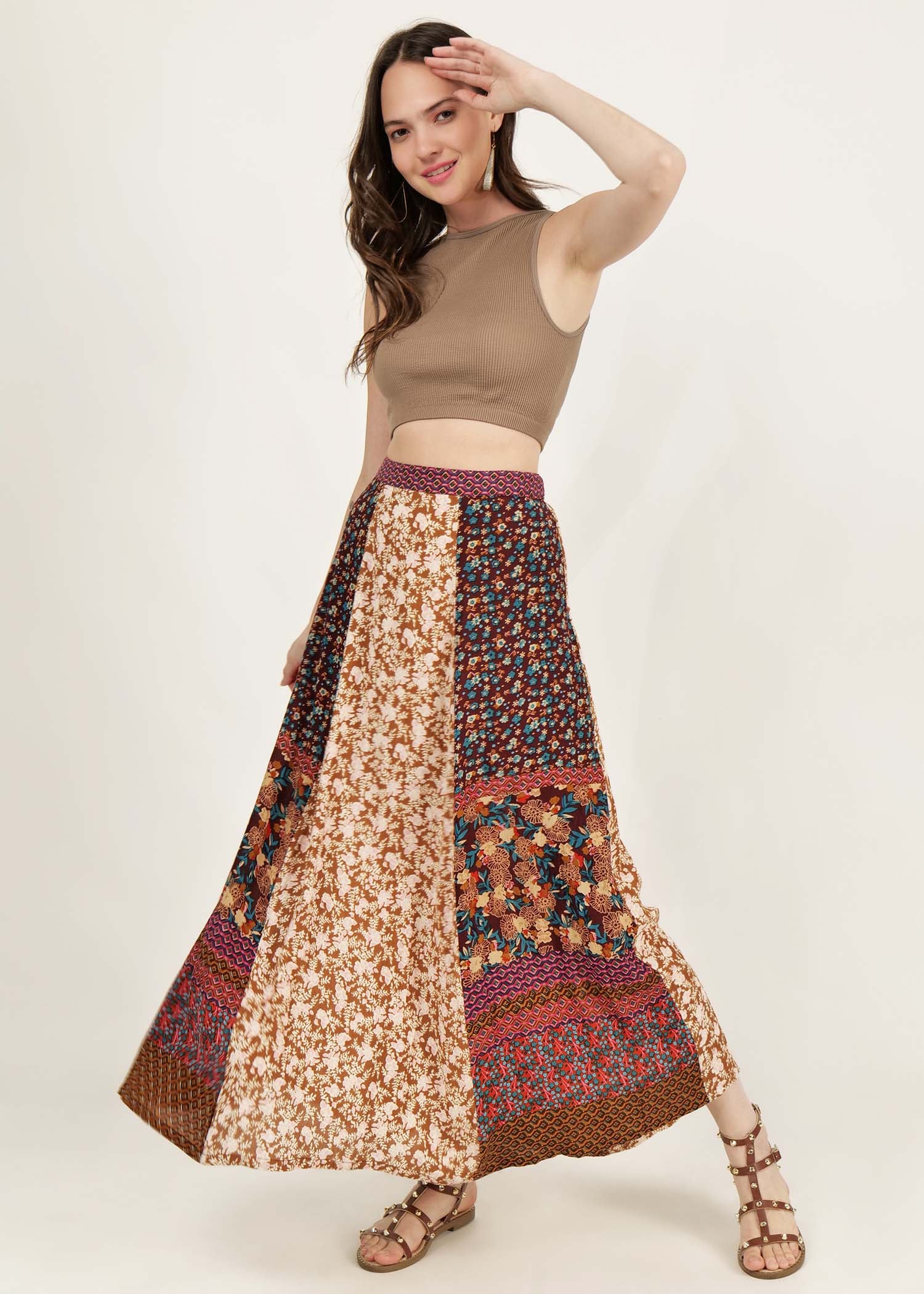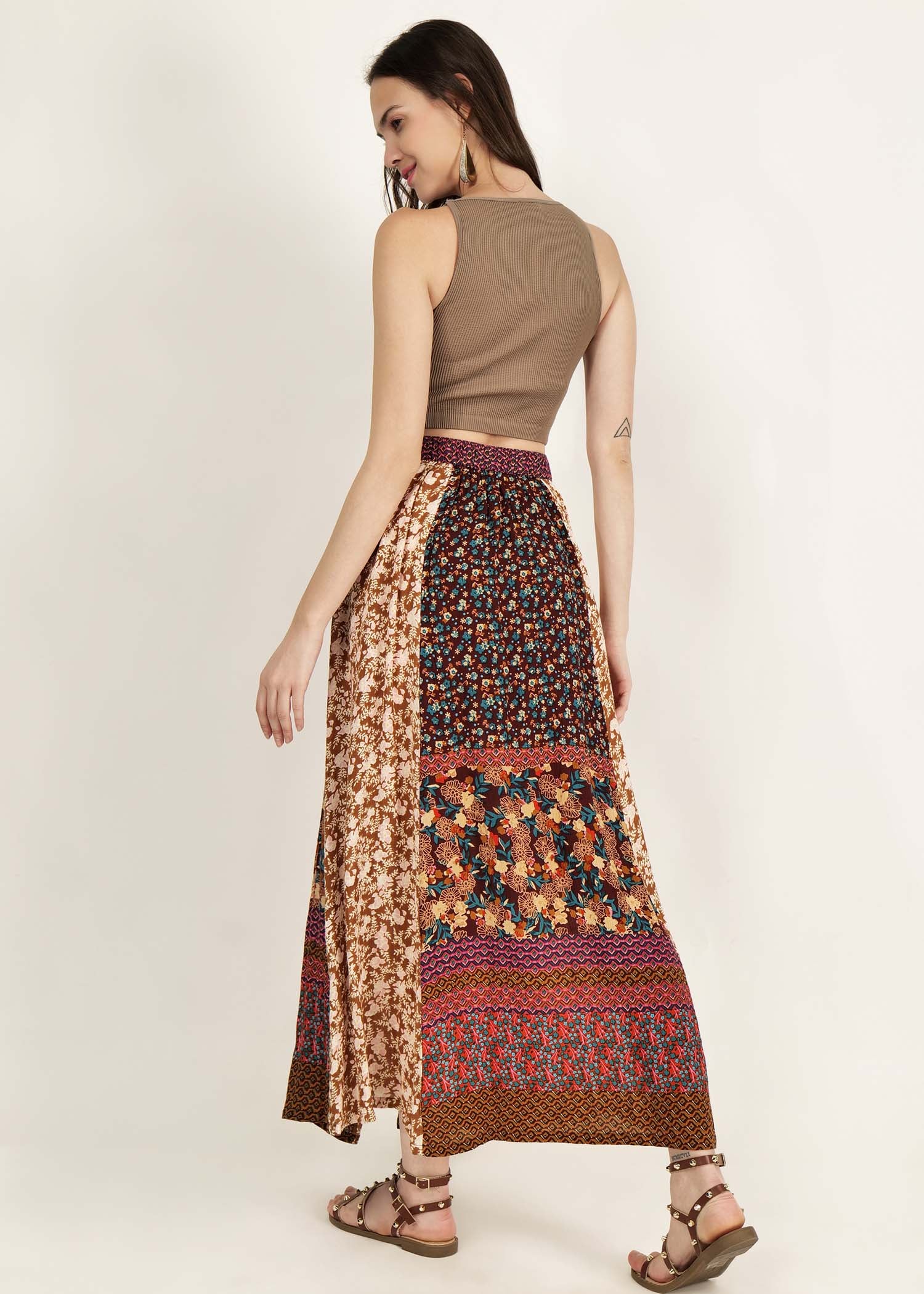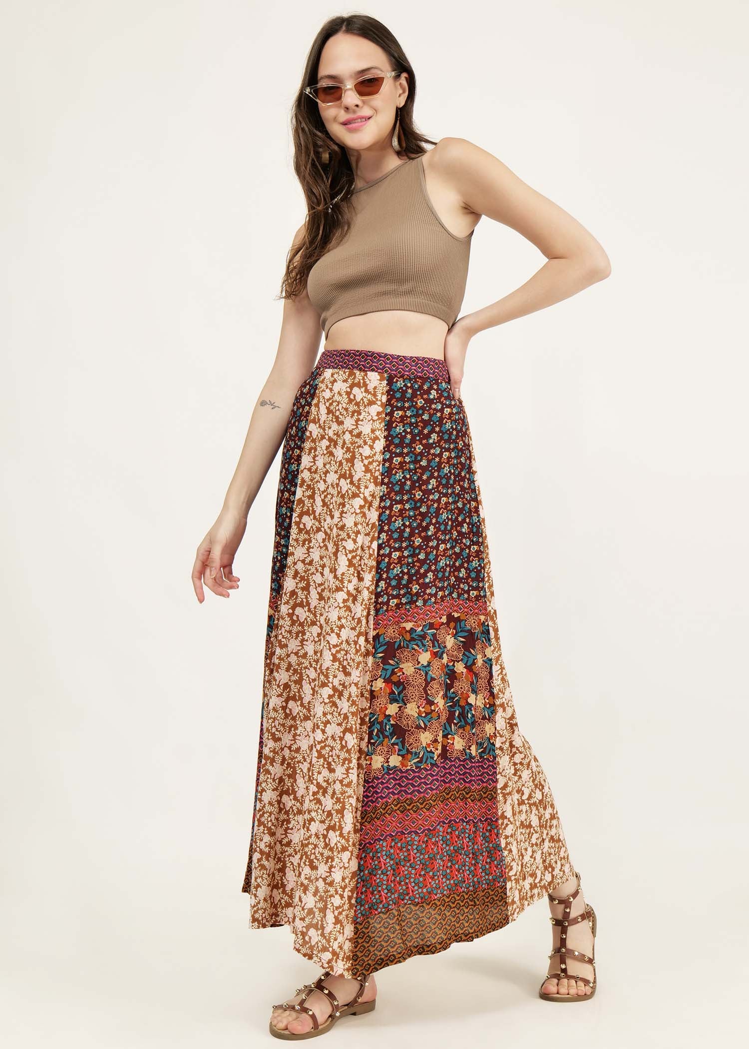 DRIRO Mix and Match Floral Printed Flared A-Line Maxi Skirt